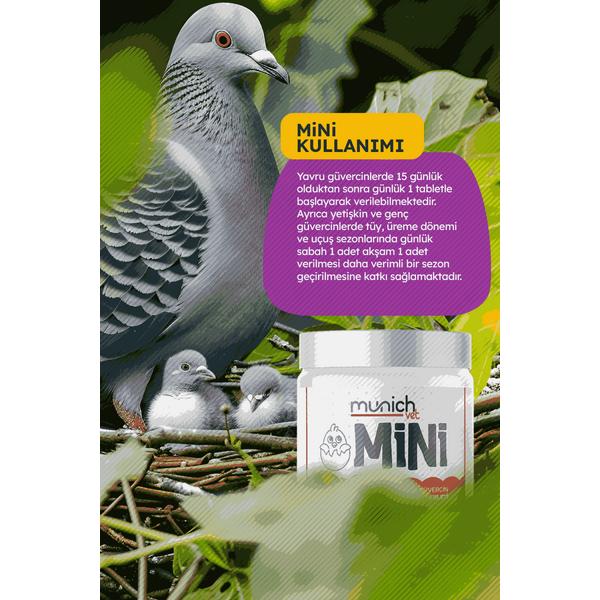 Munich Vet Mini Yavru Büyüme ve Gelişme Hapı, yavru kuşların sağlıklı gelişimi için özel olarak formüle edilmiş, vitamin, mineral ve aminoasitler içeren etkili bir destek ürünüdür. Bu ürün, iskelet ve kas gelişimini, bağışıklık sistemini, tüylenmeyi ve vücut direncini destekleyerek yavruların sağlıklı ve hızlı büyümesine katkı sağlar.