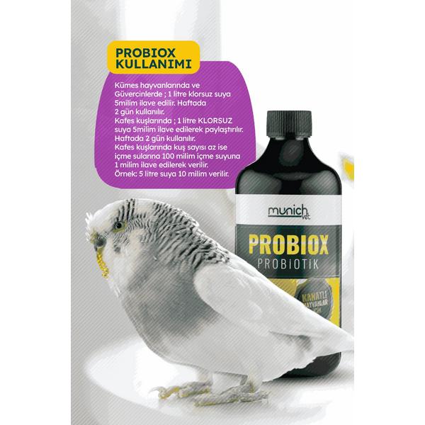 Munich Vet Probiox, kuşlar ve tüm kanatlı hayvanlar için özel geliştirilmiş sıvı formda bir probiyotik takviyesidir. Sindirim sistemini dengelemeye, bağırsak florasını düzenlemeye ve bağışıklığı artırmaya yardımcı olur. Antibiyotik sonrası destek, stres durumları, ishal ve tüy döküm dönemlerinde özellikle önerilir.